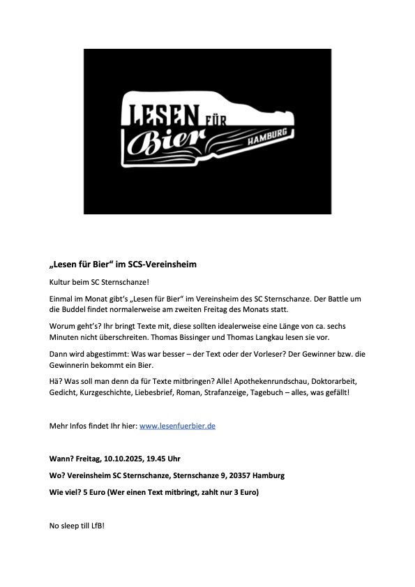 Liebe Sternschanzler:innen,